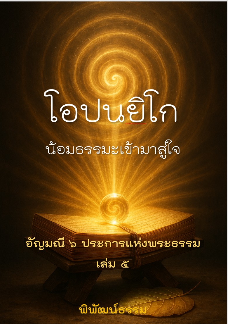 - น้อมธรรม (ในธรรม) มาพิจารณา (บทที่ ๖): นี่คือการภาวนาที่ลึกซึ้งที่สุด คือการทำความเข้าใจ “กฎแห่งเหตุปัจจัย” ที่ควบคุมโลกภายใน เราจะเรียนรู้ที่จะเป็นดั่ง “แพทย์” ผู้สามารถวินิจฉัย “โรค” คือ นิวรณ์ ๕ และเป็นดั่ง “เภสัชกร” ผู้รู้จักปรุง “ยา” คือ โพชฌงค์ ๗ เพื่อรักษาและบำรุงจิตใจ